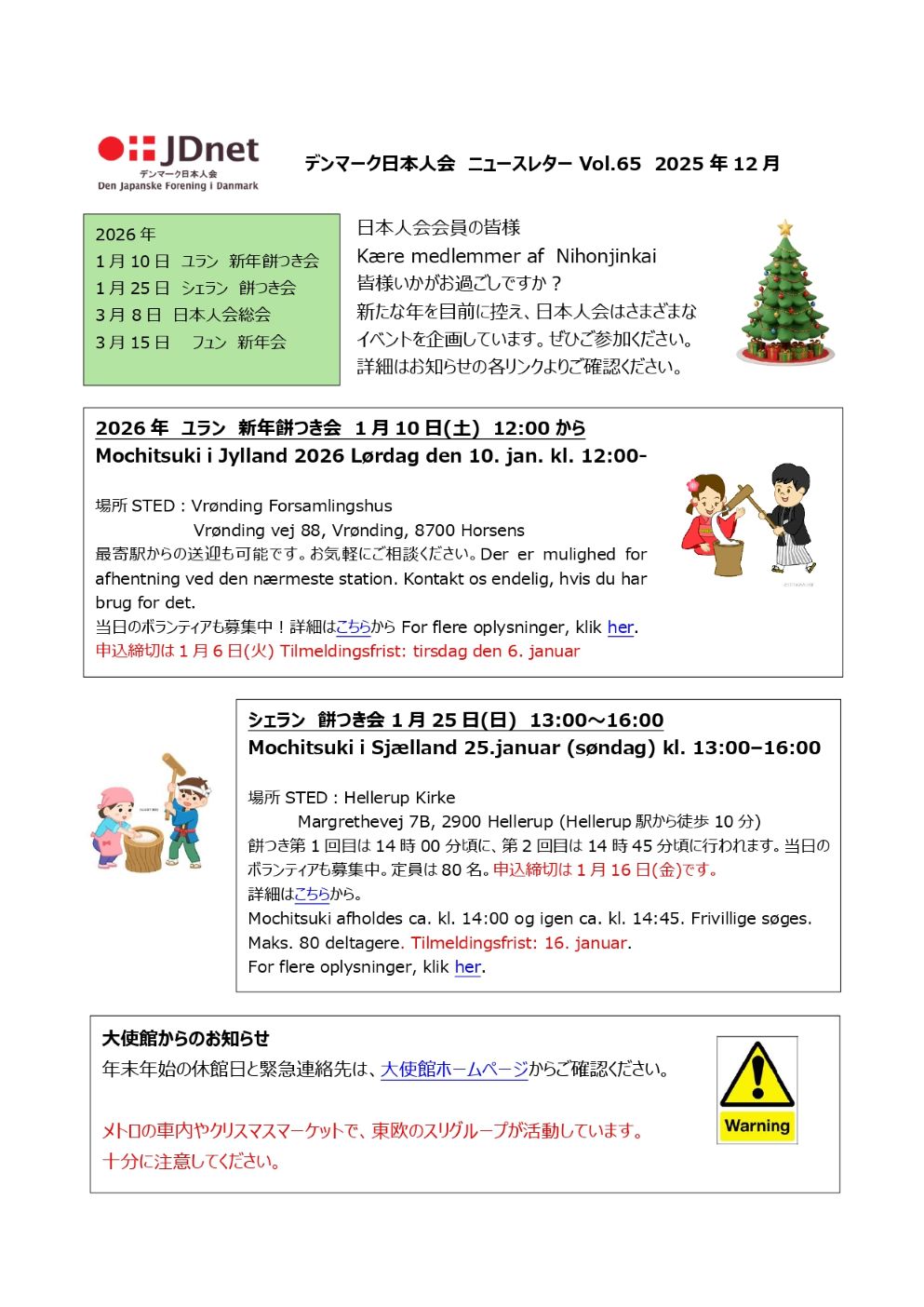 申込締切/tilmeldings frist: 1⽉6⽇(⽕)senest d. 6 Jan